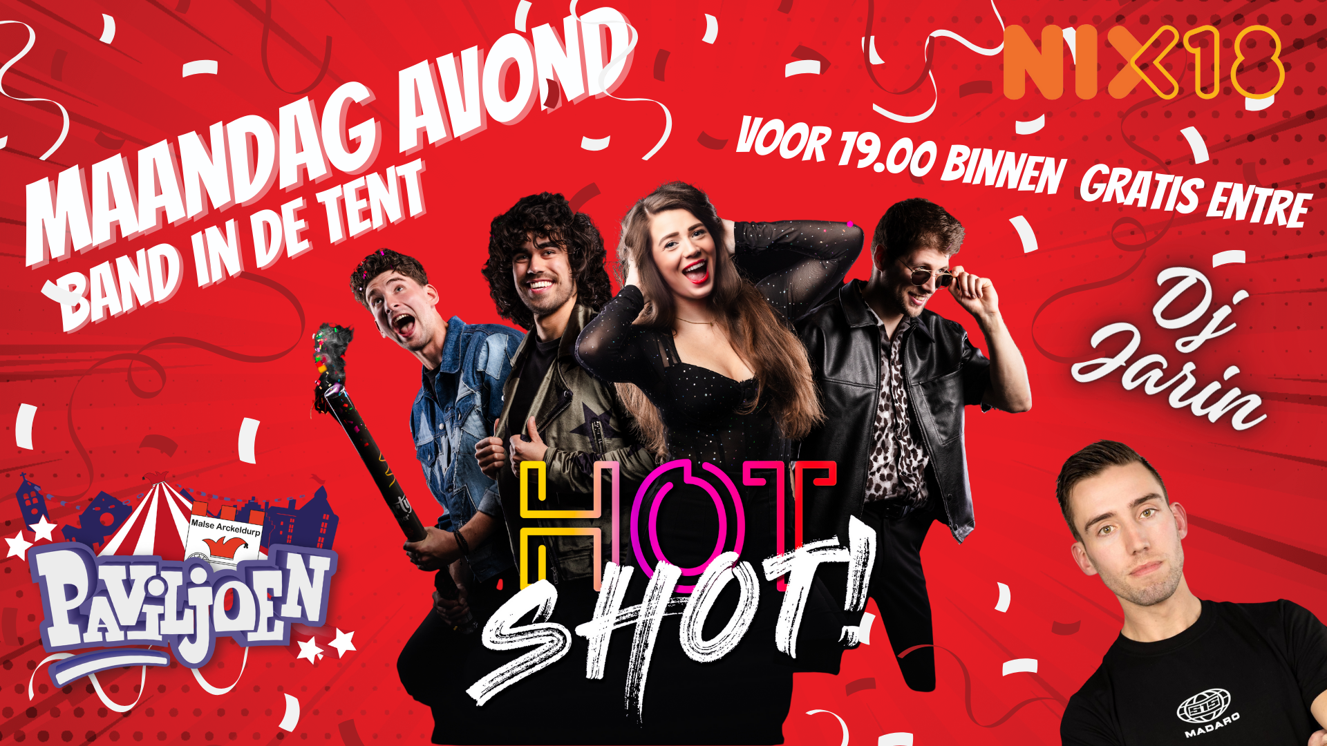 Op moandag kunnen we genieten van de klanten van niemand minder dan Dj Jarin en de band Hot Shot! Voor 19:00 uur binnen is gratis entree, daarna kun je op vertoon van je ticket naar binnen.